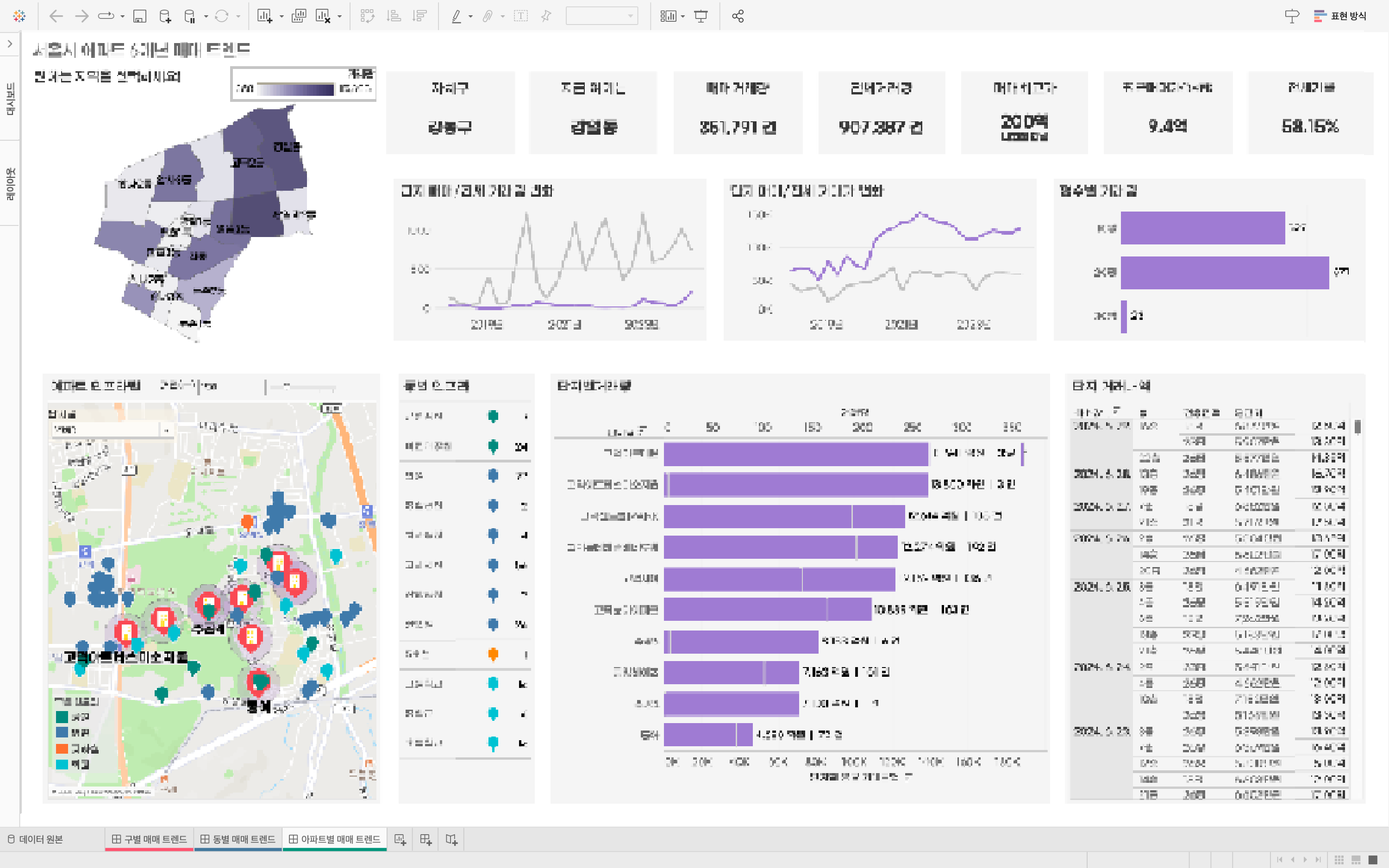 저희 팀은 태블로의 반응형 유저 인터페이스를 구현할 수 있다는 점을 백분 활용하여 서울 아파트의 전월세 및 매매가를 조회하는 대시보드를 만들기로 했습니다.