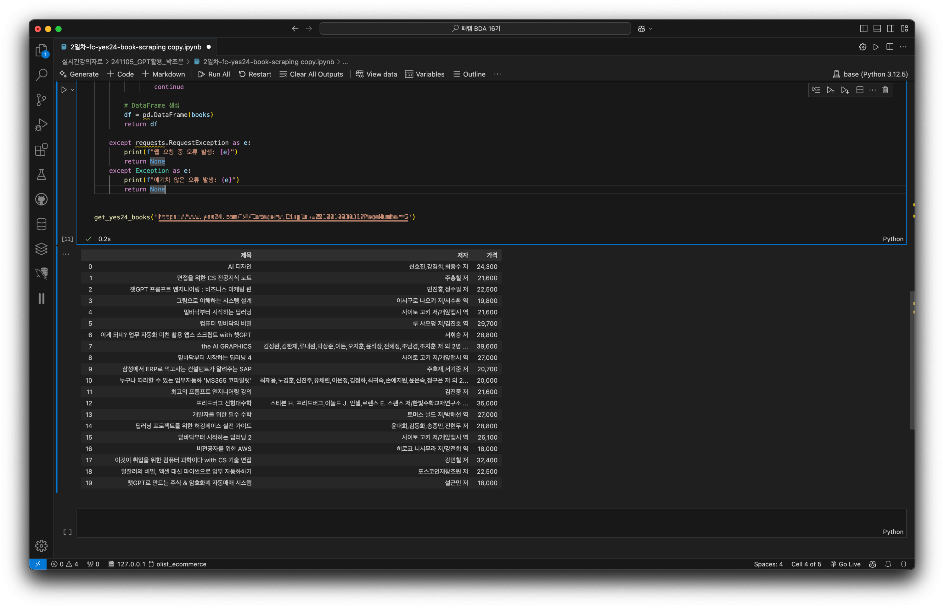| [데이터 분석 부트캠프] 이커머스 데이터 활용한 파이썬 프로젝트 후기 (0) | 2024.11.07 |