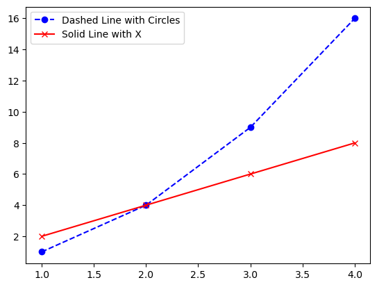 plt.plot(x, y1, color='blue', linestyle='--', marker='o', label='Dashed Line with Circles')